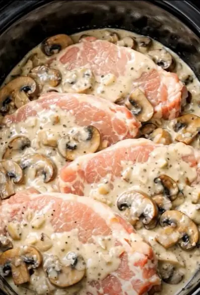 - 5-Ingredient Slow Cooker Pork Chops with Creamy Mushroom Sauce