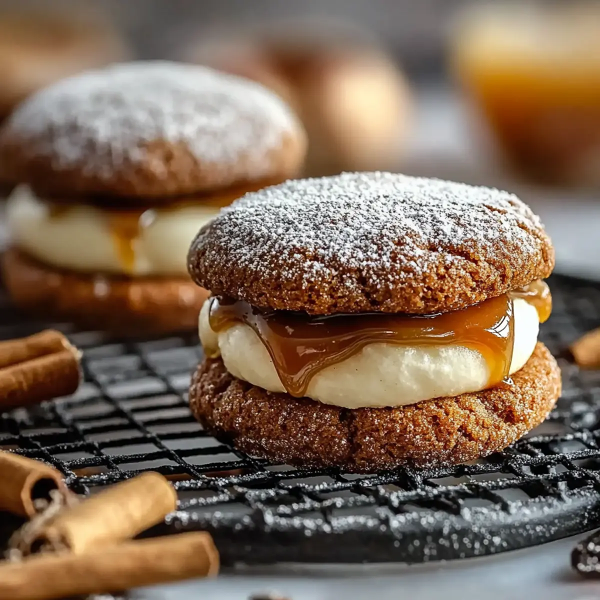 Irresistibly Soft Apple Cider Whoopie Pie Cookies with Caramel