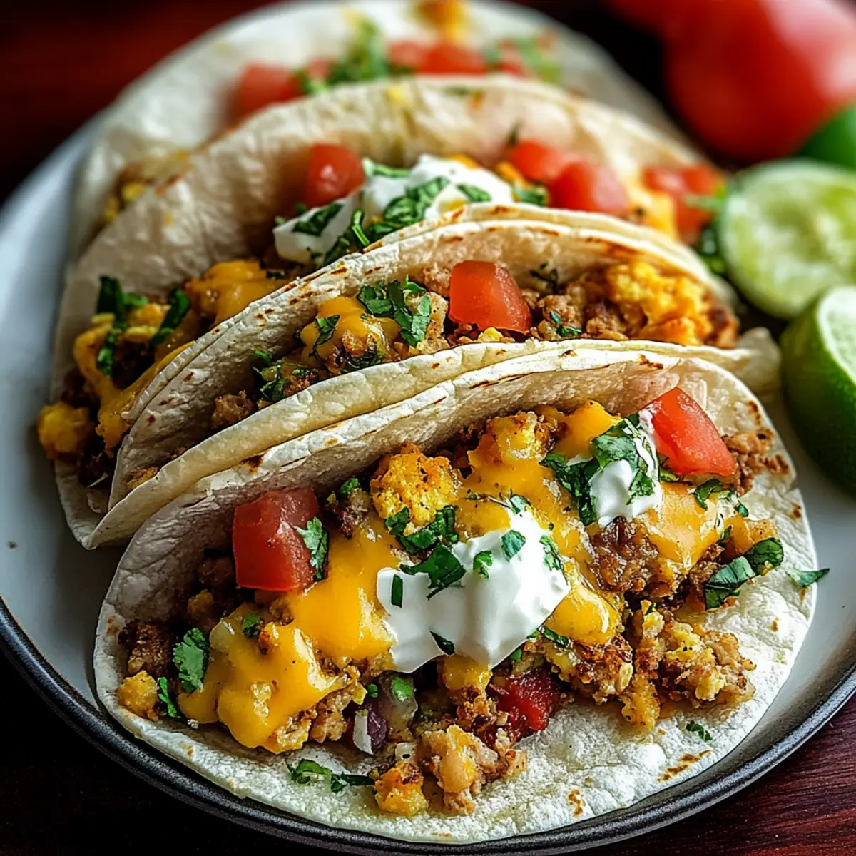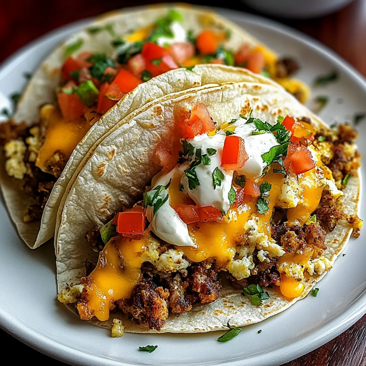 Imagine fluffy eggs mingling with savory sausage and gooey cheddar cheese, all nestled in crispy tortillas. In just 32 minutes, I transformed simple ingredients into a crowd-pleasing feast, perfect for cozy weekends or brisk weekday mornings. What I love about this recipe is its versatility—feel free to swap in your favorite fillings and toppings to make it your own! Whether served at a brunch gathering or enjoyed solo with a cup of coffee, these baked breakfast tacos are sure to bring a smile to your face and energy to your day.