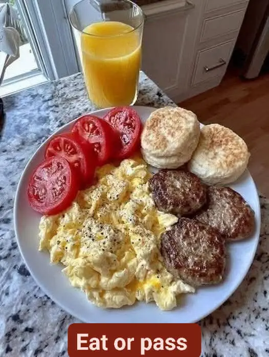 Sometimes, less is more — especially when you’re streamlining your breakfast without sacrificing flavor. This hearty plate brings together the savory comfort of fluffy scrambled eggs, golden sausage patties, and fresh sliced tomatoes for a balanced, satisfying meal. We’re leaving the biscuits off this time to keep it a little lighter (or lower carb!) — but trust me, you won’t miss a thing.