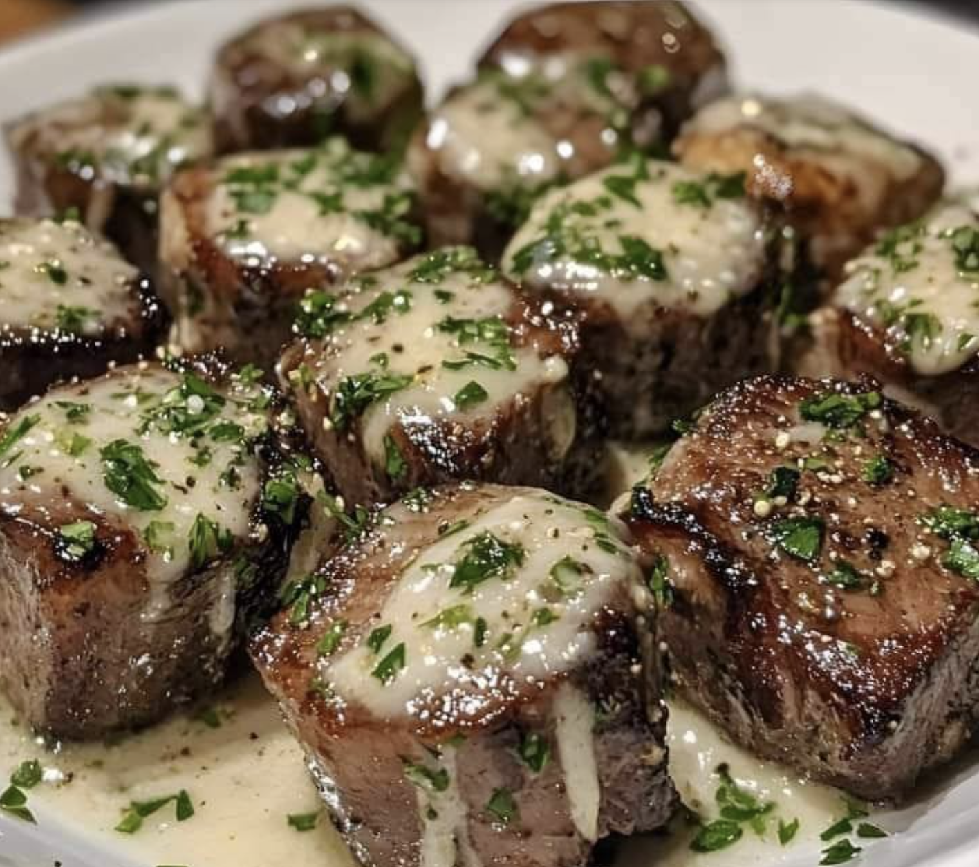 Garlic Butter Steak Bites with Parmesan Cream Sauce