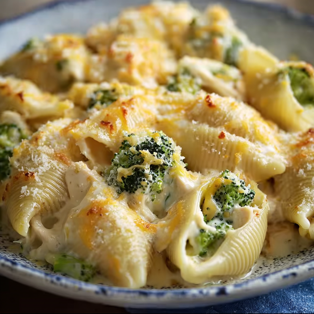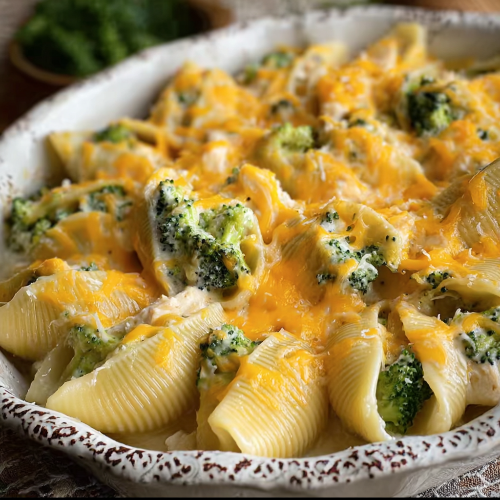 Think warm, cozy Alfredo meets cheesy chicken casserole—tucked into tender pasta shells! The broccoli adds pops of freshness, the cheddar gives it a comforting richness, and the Parmesan brings that irresistible savory kick.