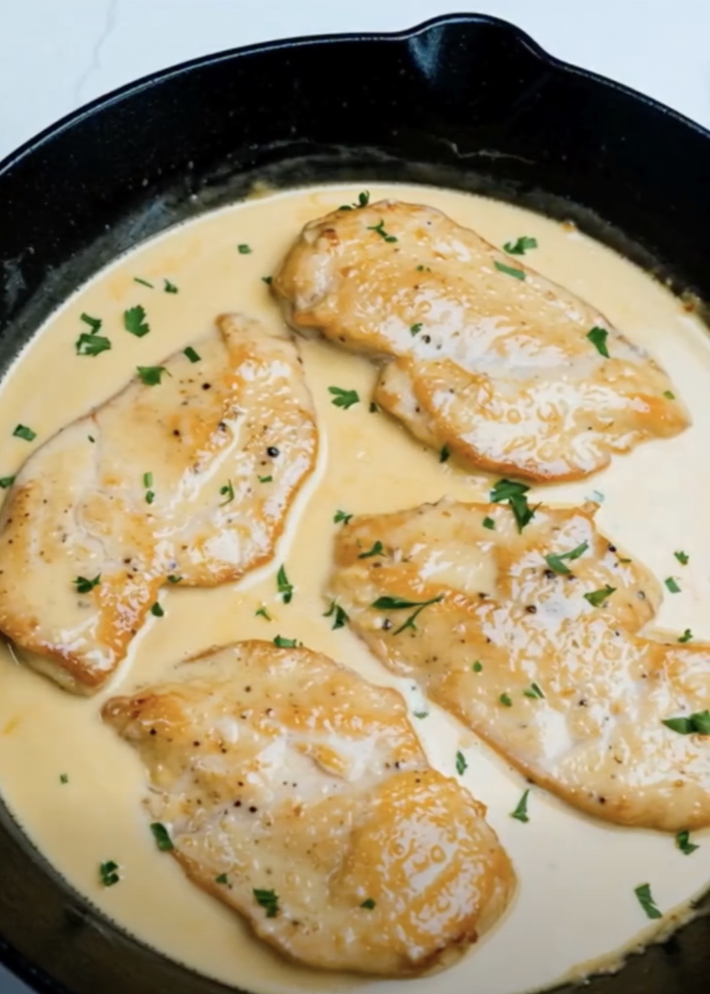 While some recipes rely on pounding chicken flat, slicing lengthwise works cleaner and speeds up prep time. This method also creates consistent pieces that soak up seasoning with less effort. Because thin chicken hits the skillet with more surface area, it browns faster and develops that light crisp edge that stands up beautifully to a creamy sauce.