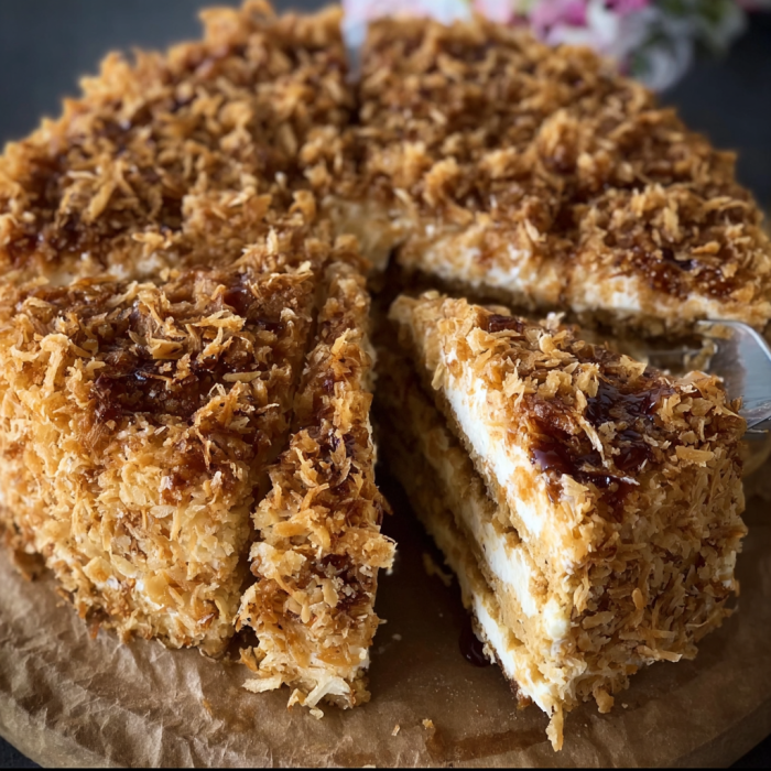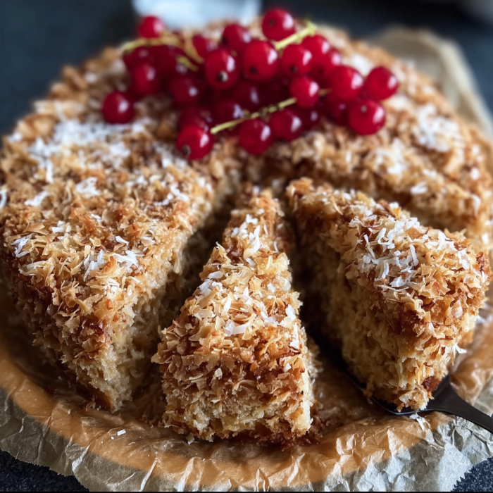 Picture a moist vanilla sponge, light and gently sweet… topped with a buttery brown-sugar coconut layer that caramelizes just enough to be chewy at the edges and soft in the center. Every bite is dreamy, nostalgic, and anything but boring!!