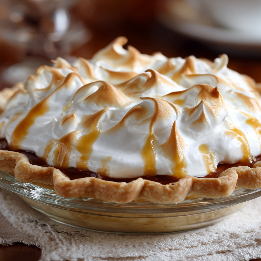 This is old-school Southern comfort in pie form. It features a silky-smooth butterscotch filling made from brown sugar, butter, and milk, enriched with egg yolks and thickened with cornstarch. The texture is luscious — almost pudding-like — and every bite is full of warm, caramelized sweetness.