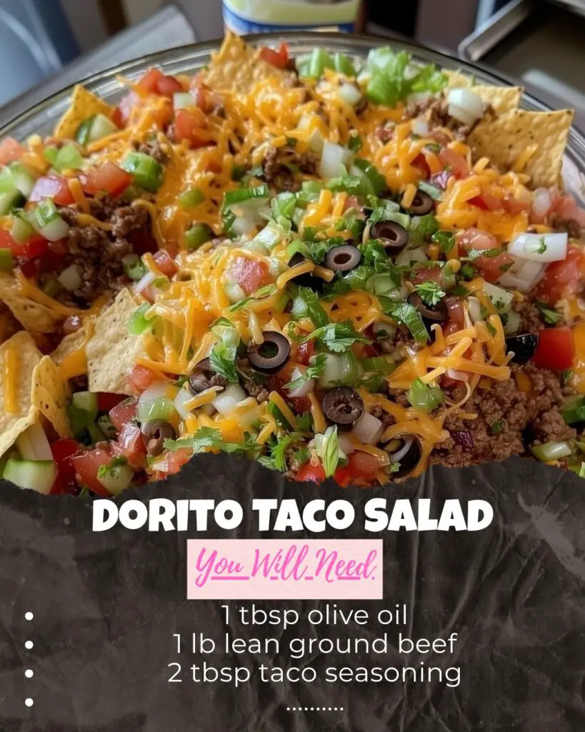 Dorito Taco Salad delivers bold flavor, amazing crunch, and a satisfying mix of textures that make it unforgettable. This easy recipe brings together seasoned beef, crisp lettuce, juicy tomatoes, and the unmistakable crunch of nacho cheese chips. Because the keyword Dorito Taco Salad appears throughout, you get a dish that’s not only delicious but also perfect for casual dinners, potlucks, or family gatherings. It’s simple to customize, fast to prepare, and always a crowd favorite.