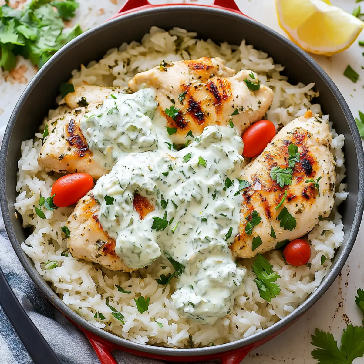 Irresistibly Easy Dump-and-Bake Chicken Tzatziki with Rice Recipe