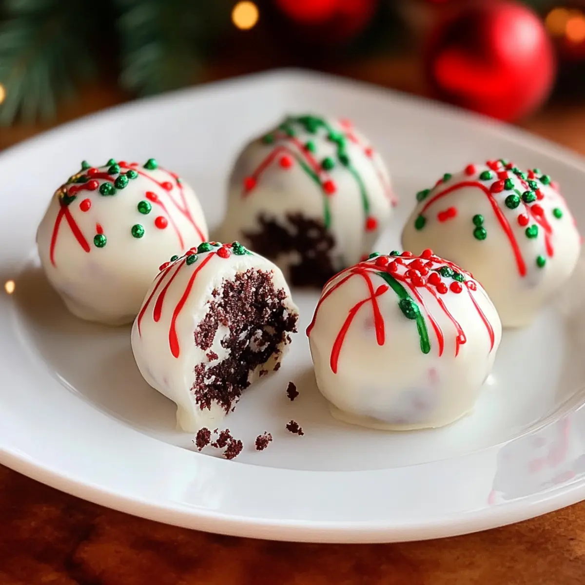 Festive Colors: Use colored candy melts to coat your truffles in bright holiday hues; pairing these with playful sprinkles can elevate your dessert display.