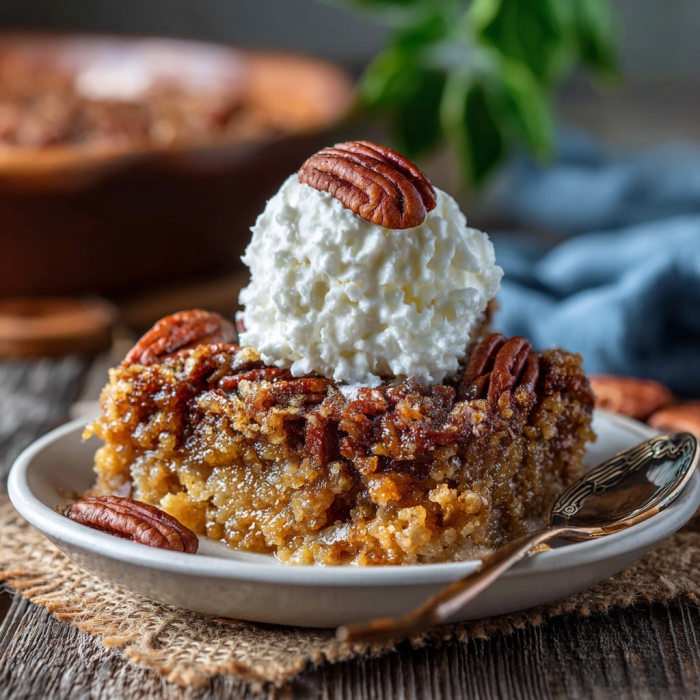 This is your shortcut to pecan pie vibes with none of the fuss. No crust. No rolling. No stress. Just dump, bake, and get ready for something truly indulgent. Perfect for potlucks, holiday tables, or any time you want an easy dessert that feels like a warm hug with a scoop of ice cream on top. 🍂✨