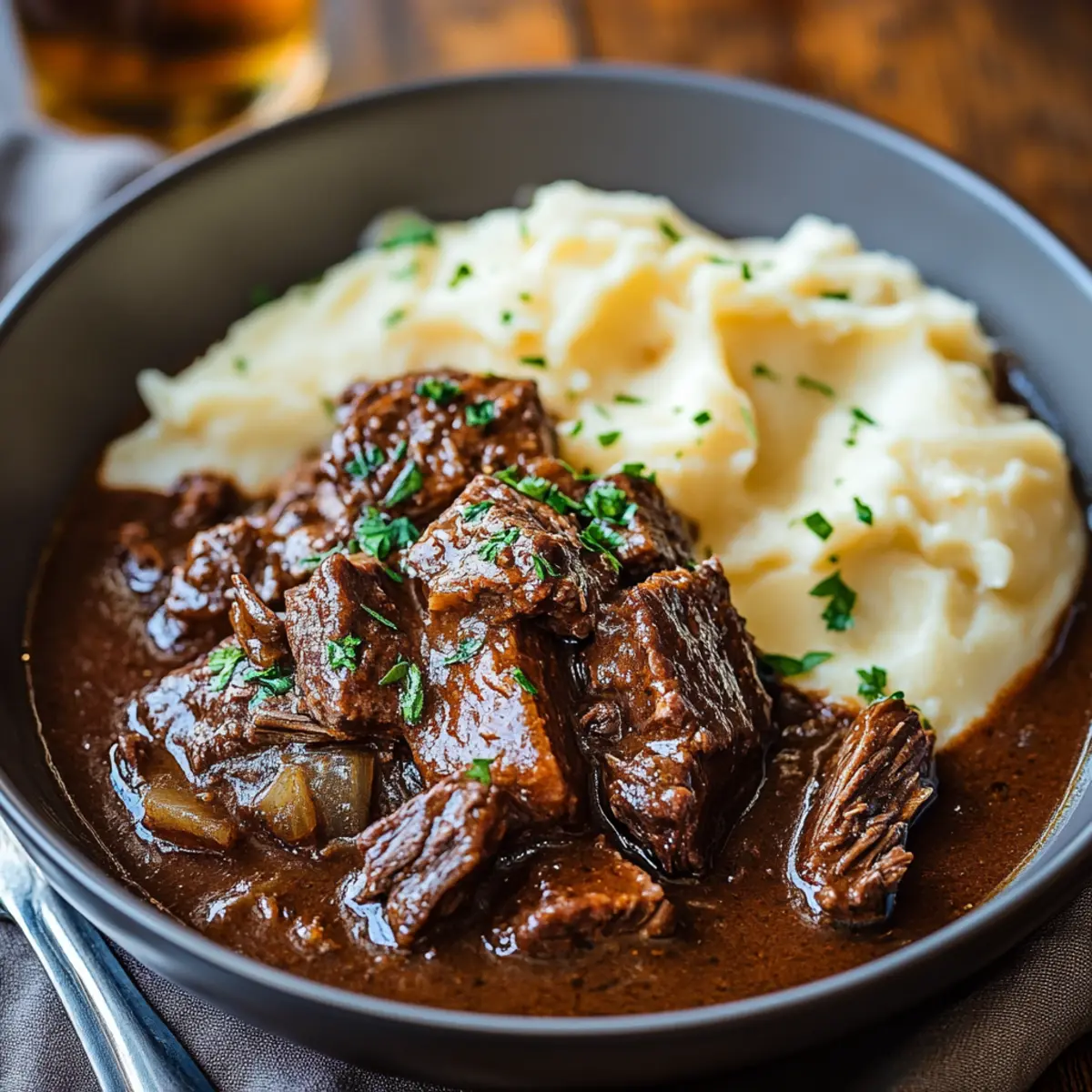 Comfort in every bite: Served over creamy mashed potatoes, it’s the ultimate family favorite for cozy dinners.