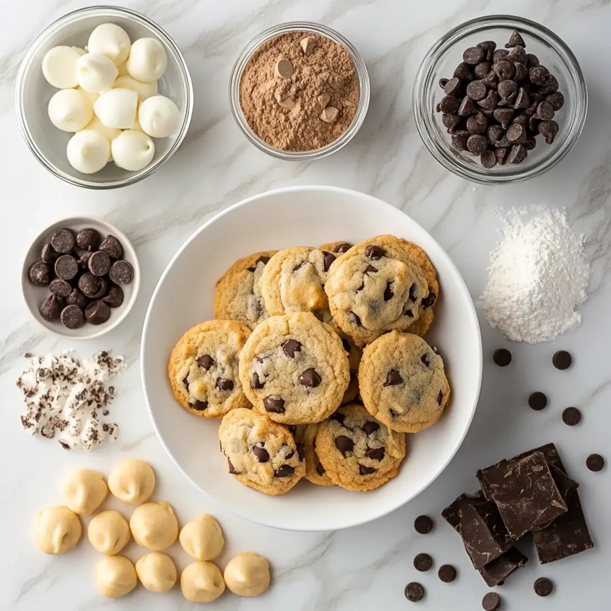 - Chocolate Chips – The main flavor component; choose high-quality dark chocolate for a richer profile or white chocolate for festive flair.