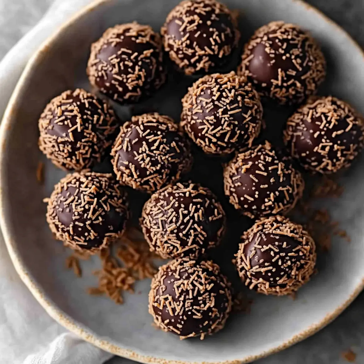 Coat in Sprinkles: Roll each ball in the chocolate sprinkles, pressing gently for an even coating. This adds a fun texture and festive flair to your truffles.