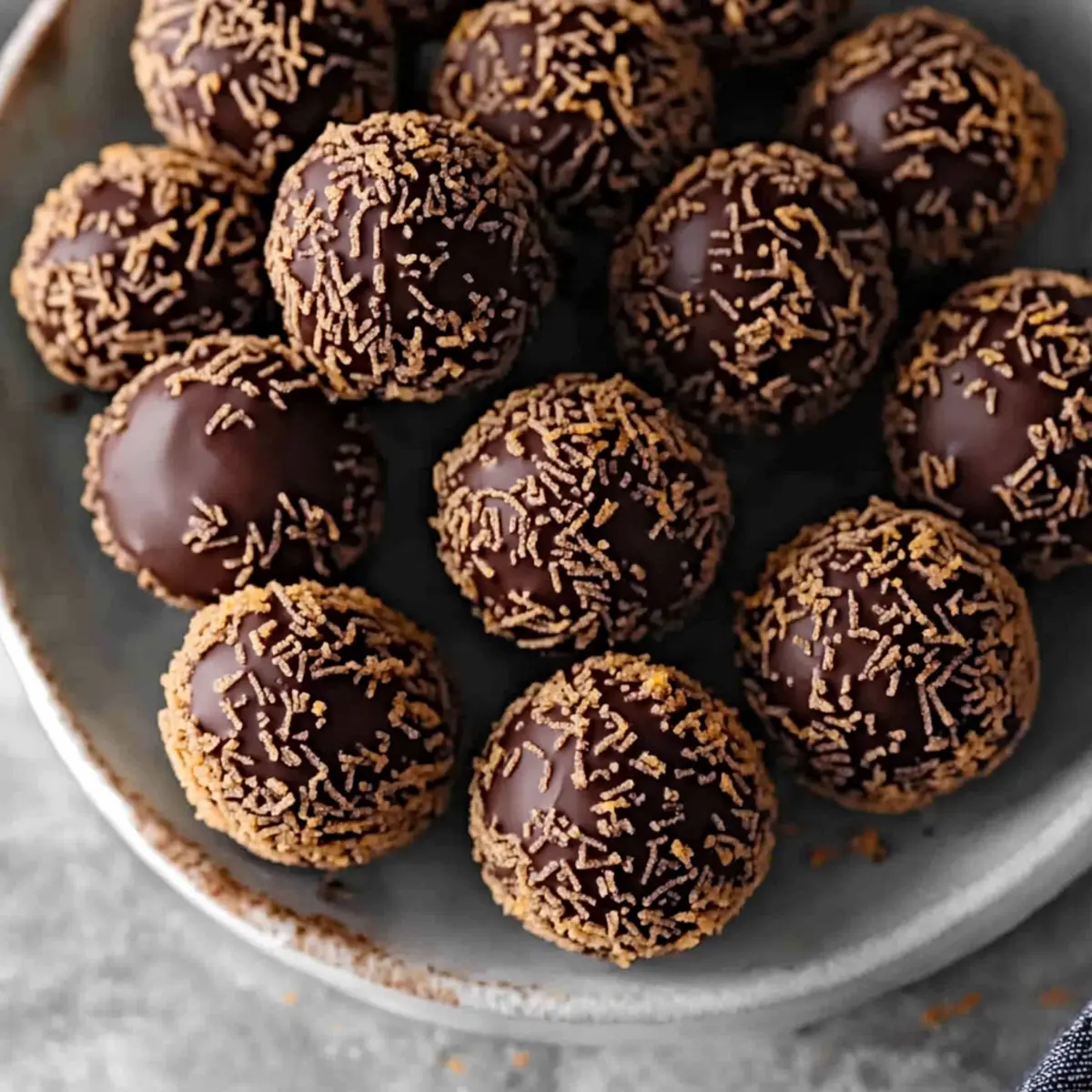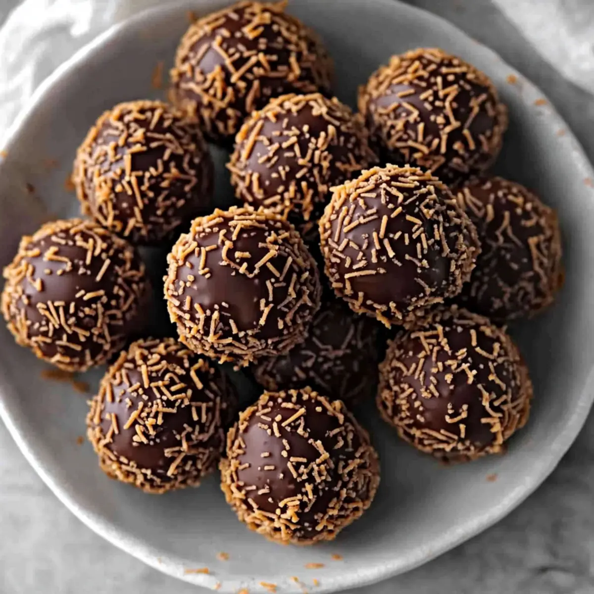 - Coat in Sprinkles: Roll each ball in the chocolate sprinkles, pressing gently for an even coating.