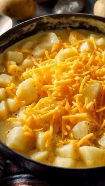 Grandma’s 4-Ingredient Cheddar Potato Soup relies on pantry staples that most people already have. Potatoes bring natural starch, which thickens the soup without extra ingredients. Milk adds creaminess while keeping the flavor light. Butter deepens the richness, and sharp cheddar cheese provides the bold, savory finish. Because each ingredient has a clear purpose, the soup tastes balanced rather than heavy.