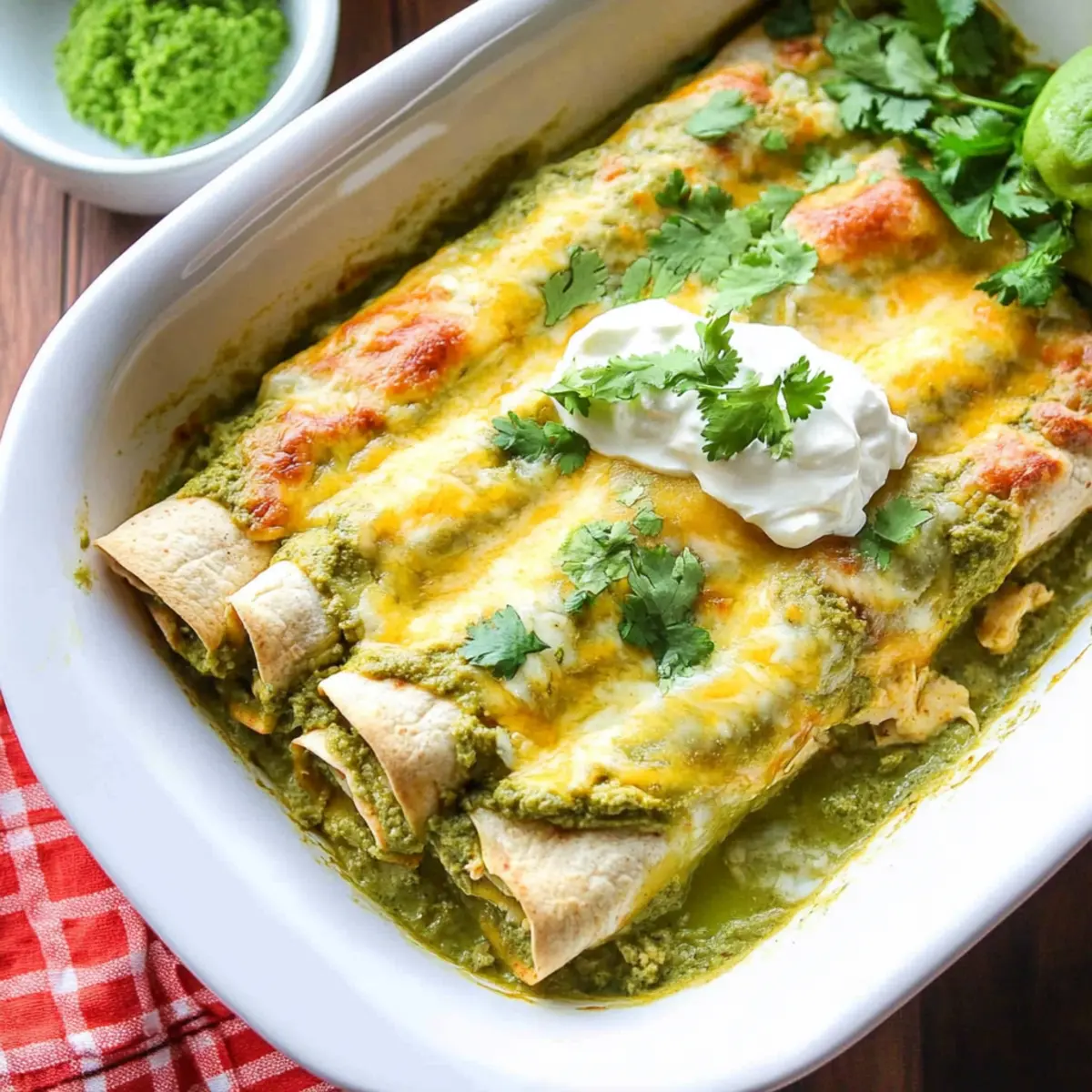 Irresistibly Cheesy Green Enchiladas with Chicken Cream Cheese Filling