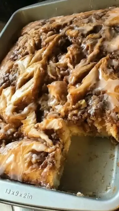 Keep leftovers covered at room temperature for up to two days or refrigerate for up to five. Reheat individual slices in the microwave for 15–20 seconds to bring back the soft, gooey texture. The cake retains moisture thanks to the buttery swirl and glaze, making it just as delicious the next day.