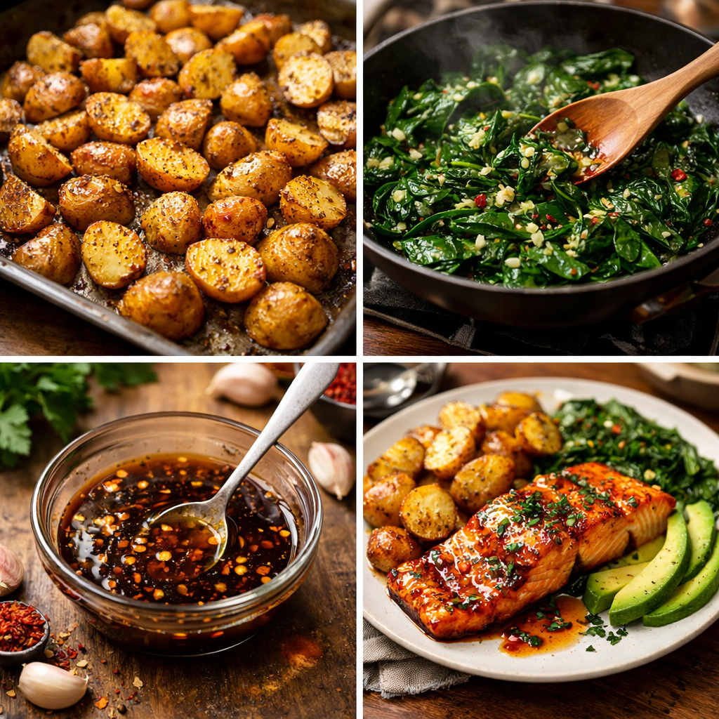 Honey Garlic Salmon with Crispy Potatoes & Greens – Ultimate Easy Gourmet Dinner