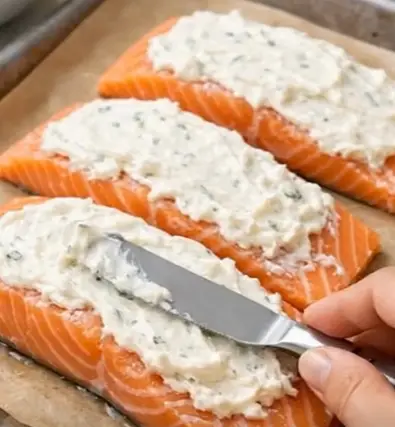 Low Carb Baked Salmon with Creamy Parmesan Topping