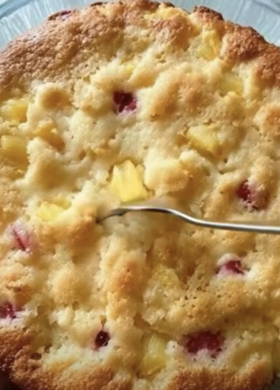 One of the defining features of Mini Cuppa Cake is that the fruit cocktail is not drained. The juice becomes part of the batter, creating steam and moisture during baking. This moisture allows the fruit to soften further and helps form the sauce beneath the cake.