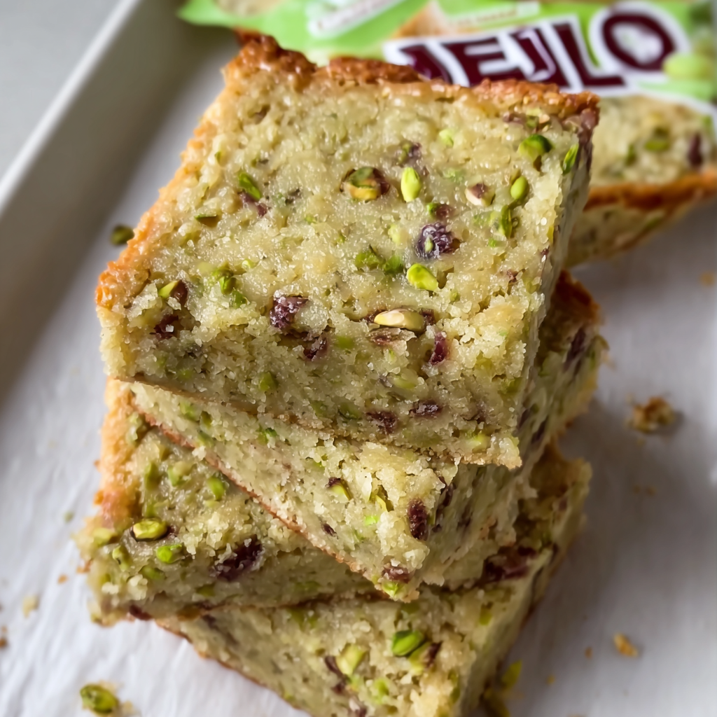 These pistachio blondies combine the richness of classic blondies with a fun pistachio twist. The instant pudding mix keeps them unbelievably soft, while the pistachios and white chocolate give every bite texture and sweetness. They’re quick, easy, and crowd-pleasing—perfect for potlucks, bake sales, or late-night cravings.