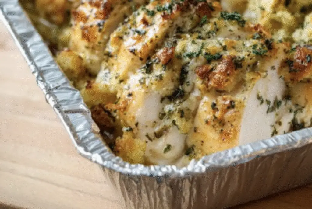 This Potluck Go-To Just 4 Ingredients Chicken Stuffing Bake fits perfectly into real life. It works for family dinners, potlucks, freezer meals, and even holiday tables when you need something reliable. It fills the kitchen with the smell of butter, herbs, and baked chicken, creating that unmistakable feeling of home before the oven timer even rings.