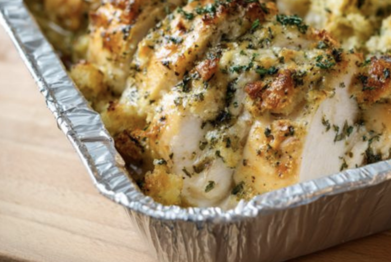 - Prepare stuffing according to package directions and layer over chicken.