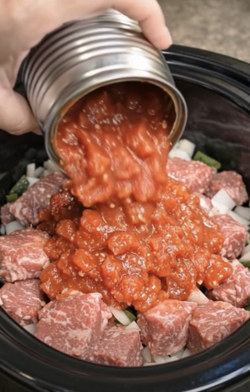 The diced tomatoes add natural acidity and brightness. Meanwhile, the cream of mushroom soup provides richness and body. As these ingredients combine during cooking, they create a savory tomato-mushroom gravy that coats the steak beautifully.