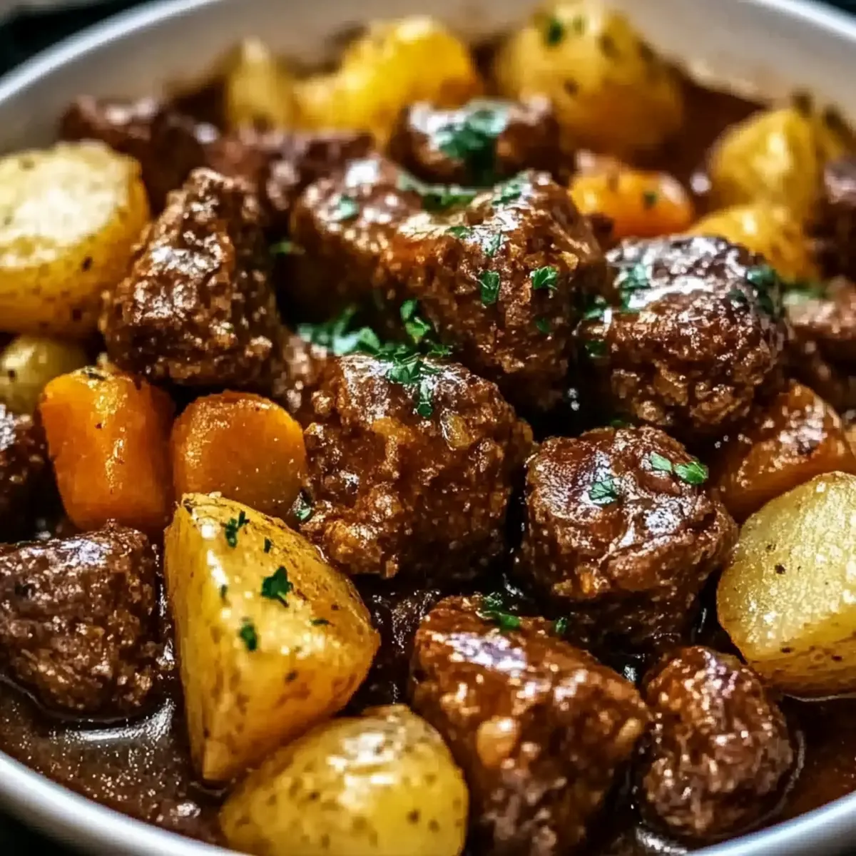Irresistibly Easy Slow Cooker Garlic Butter Beef Bites & Potatoes