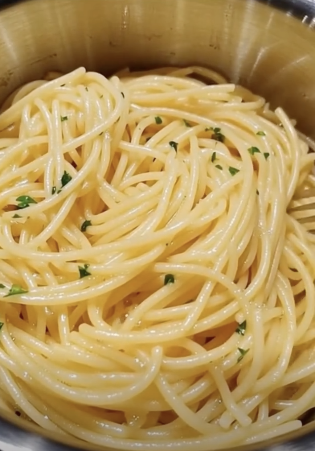 Reserving pasta water becomes essential. The starchy water helps emulsify the oil, creating a glossy sauce instead of a greasy finish. When the spaghetti meets the pan, the transformation happens quickly.