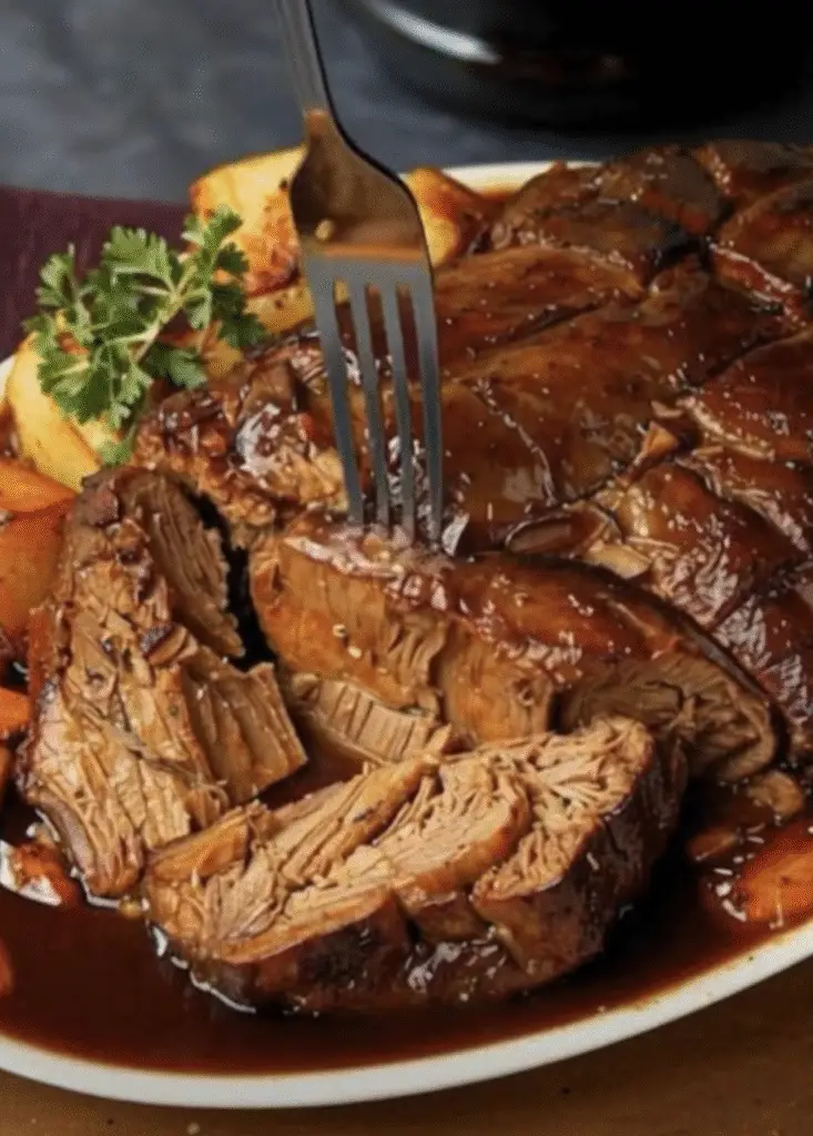 If you prefer thicker gravy, removing the roast and vegetables allows you to thicken the liquid. Simmering it with a cornstarch slurry quickly creates a smooth, rich gravy.