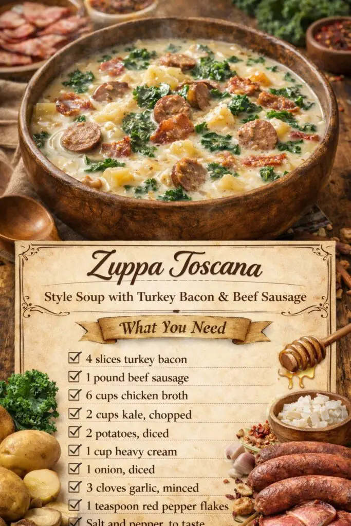 Zuppa Toscana Style Soup with Turkey Bacon & Beef Sausage